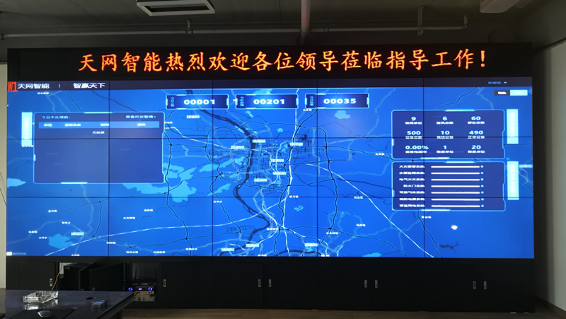 近期,維康國際為湖南省天網(wǎng)智能科技有限公司安裝一套高清顯示大屏,3x5拼接、55寸液晶拼接屏,雙邊拼縫為3.5mm,采用大數(shù)據(jù)顯示解決方案,主要用來大數(shù)據(jù)顯示。