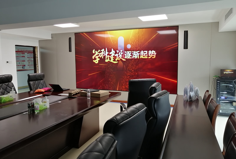 近日,我公司為廣東電力醫(yī)院會議室安裝一套會議室顯示屏,采用3x3拼接、55寸液晶拼接屏,拼縫僅有0.88mm,如上圖所示,大屏一體化顯示效果非常好,主要用來視頻會議及會議信息顯示使用。
