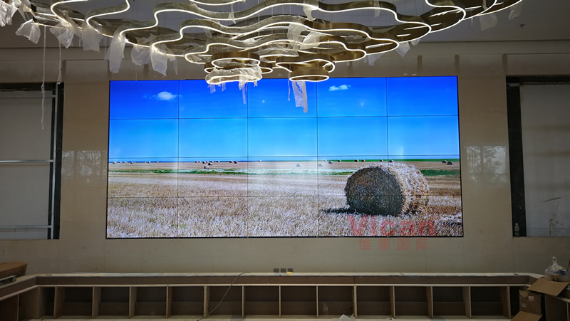 我公司為云南昆明某售樓中心提供的這套顯示大屏,采用4行5列、55寸拼接屏,雙邊拼縫僅有3.5mm,大屏幕畫面顯示清晰、亮麗,有著很好的一體化顯示效果。