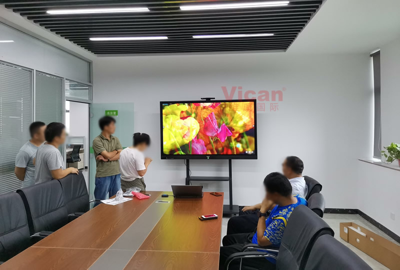 維康國(guó)際為深圳西濼辰食品公司的會(huì)議室提供了一臺(tái)75寸會(huì)議平板,采用雙系統(tǒng)模式,支持遠(yuǎn)程視頻會(huì)議、無限傳屏與雙向投屏,并且精準(zhǔn)觸控、手寫自如,采用移動(dòng)小推車安裝,使用更高效、便捷。