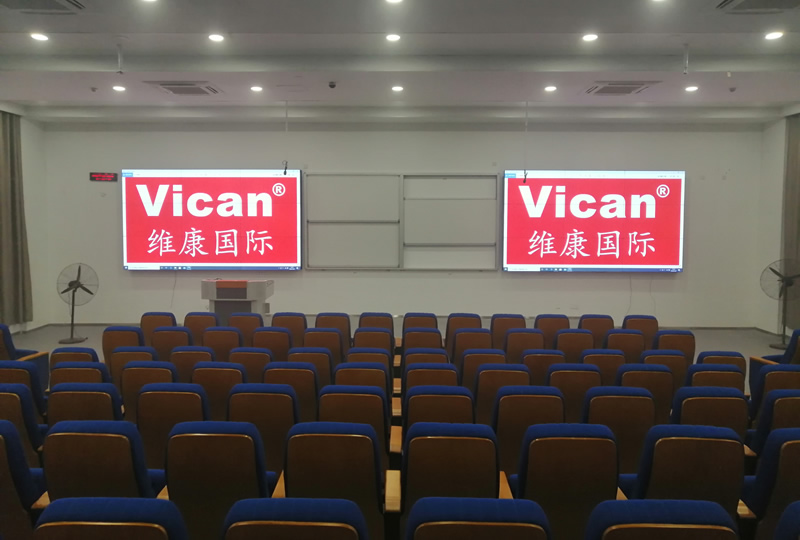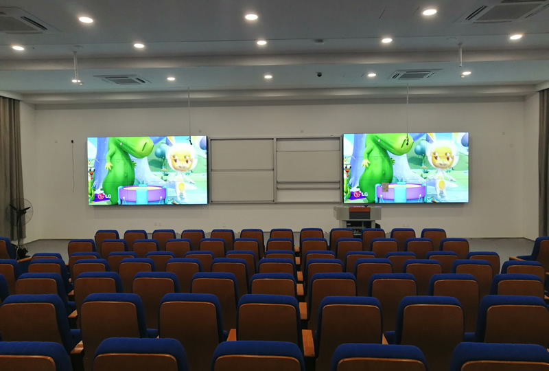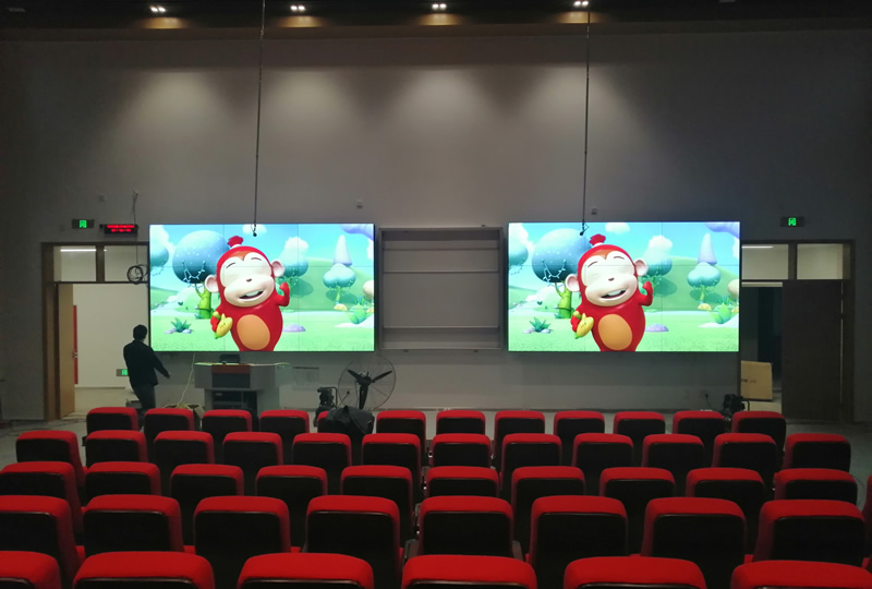 該案例中,維康國際為四川理工學(xué)院的教室提供的8組顯示大屏,每間教室采用兩組3x3拼接、55寸超窄邊液晶拼接屏,雙邊物理拼縫僅有0.88mm,我們從上圖可以看出,大屏幕畫面清晰亮麗,基本不受黑邊影響,有著很好的一體化顯示效果。