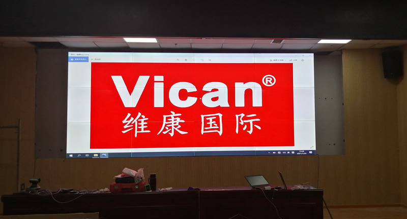 本案例中,是維康國際為廣州市某民政局會(huì)議室提供的一套大屏顯示產(chǎn)品,由3行4列、55寸無縫拼接屏組成,在縫隙處理上采用LED電子補(bǔ)償技術(shù),對(duì)液晶拼接單元的黑白進(jìn)行消隱,與畫面的融合度高,讓大屏畫面得到更好的一體化顯示效果。
