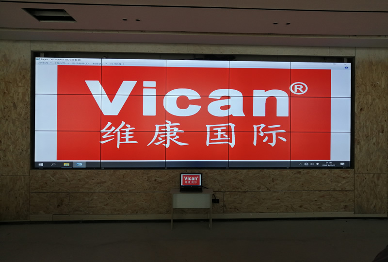 本案例中,維康國際為威海市金鼎璽悅售樓部提供一套顯示大屏,由3x5拼接、46寸3.5mm液晶拼接屏組成,采用內(nèi)嵌的壁掛式安裝,大屏幕顯示清晰亮麗,如上圖所示。