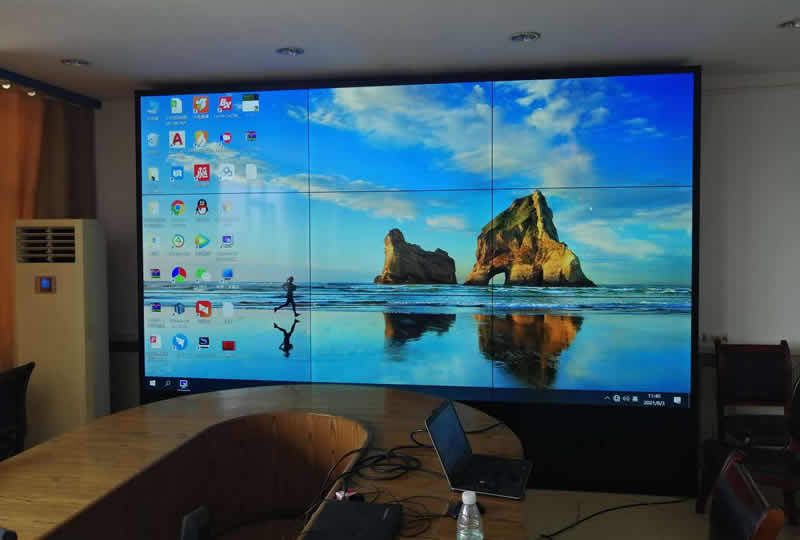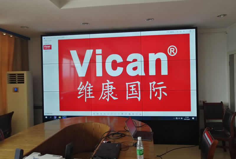 本案例中,維康國(guó)際為廣州華景軟件園某軟件公司提供一套會(huì)議大屏,采用3x3拼接、55寸液晶拼接屏,屏體為L(zhǎng)G3.5mm原裝面板,大屏幕顯示清晰,拼縫較小。