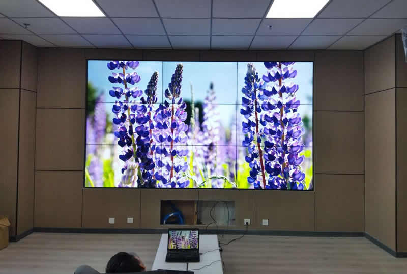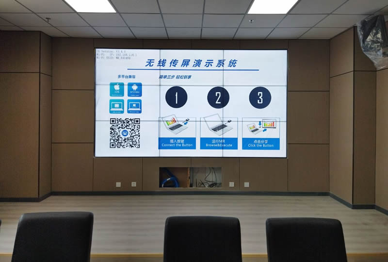 本案例中,維康國際為甘肅某地震局提供3套高清顯示大屏,主要用來辦公、會議、指揮使用,采用3x3拼接、55寸液晶拼接屏,如上圖所示。