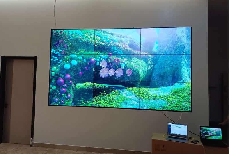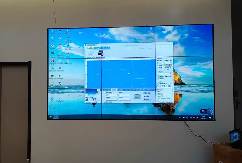 本案例中,維康國際為山東金鄉(xiāng)農(nóng)村商業(yè)銀行提供一套4K液晶拼接屏,采用3x3拼接、49寸3.5mm液晶面板,大屏畫面清晰亮麗,一體化顯示效果好。