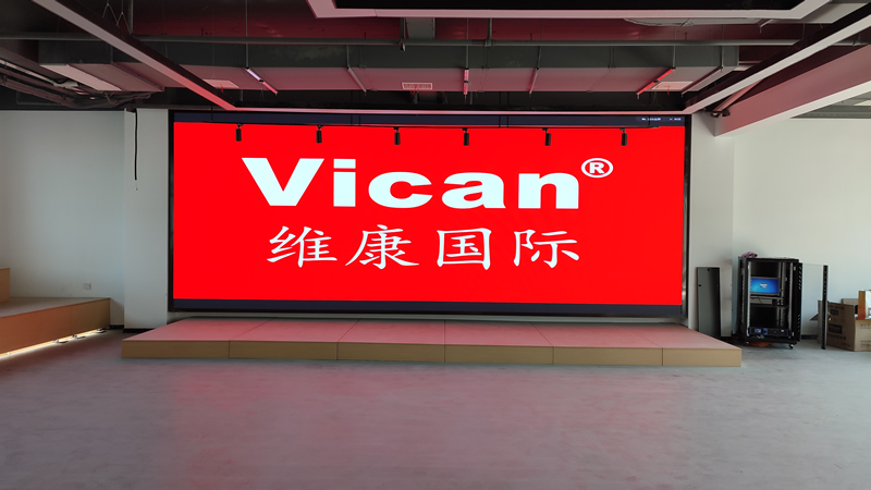 本案例中,維康國際為浙江臺州某企業(yè)展廳提供了一套顯示大屏,采用P2系列的LED全彩屏,大屏幕顯示清晰、色彩鮮艷、一體化效果好,如上圖所示。