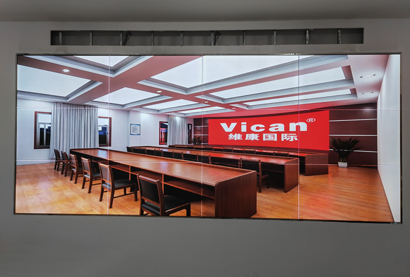 本案例中,維康國(guó)際為佛山順德某企業(yè)提供了一套高清顯示大屏,采用3行3列、55寸電子無(wú)縫拼接屏,如上圖所示,大屏幕顯示清晰亮麗,沒有黑邊的影響,全屏顯示的一體化效果很好。