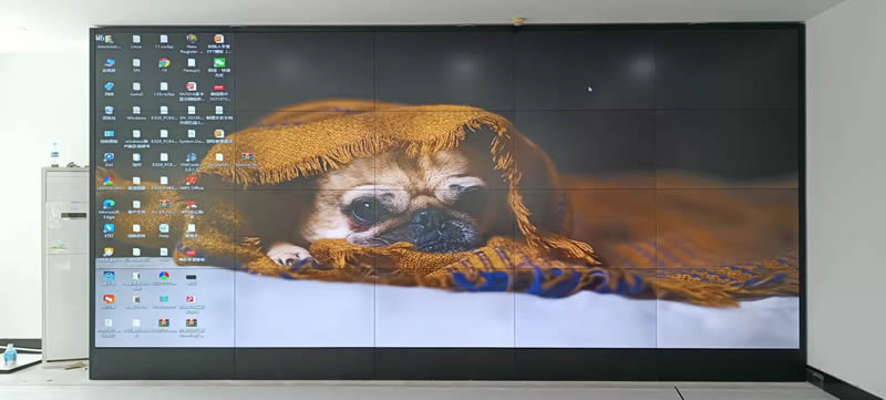 本案例中,維康國際為濟南某法院提供一套高清顯示大屏,由4x4拼接、55寸液晶拼接屏組成,采用超窄邊0.88mm液晶面板,如上圖所示,大屏幕顯示,超小拼縫,全屏一體化顯示效果好。