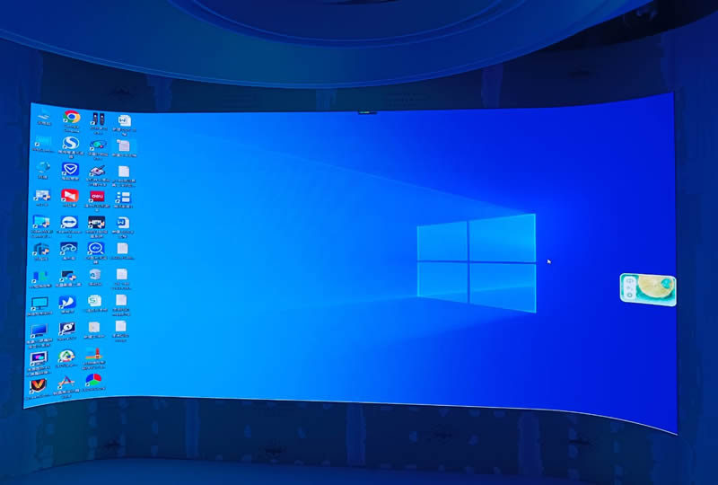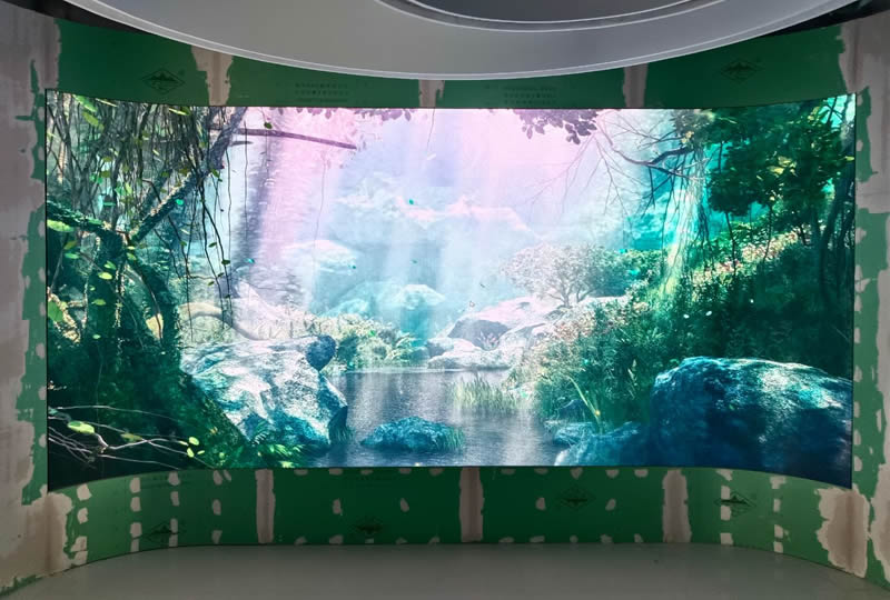 本案例中,維康國(guó)際為廣州市南沙區(qū)金沙某企業(yè)提供一套高清大屏,安裝在公司前臺(tái)背景墻位置,采用小間距LED系列,弧形安裝,大屏幕顯示清晰亮麗,視覺(jué)體驗(yàn)效果很好。