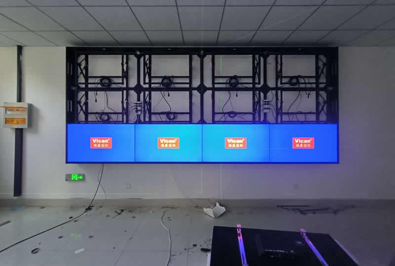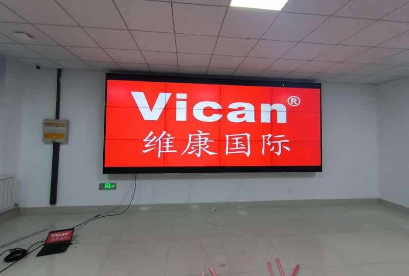 本案例中,維康國(guó)際為濰坊工商職業(yè)學(xué)院提供一套會(huì)議大屏,由3x4拼接、55寸液晶拼接屏組成,屏體為1.7mm窄邊面板,采用前維護(hù)支架包邊安裝,大屏幕顯示清晰,外觀較好。
