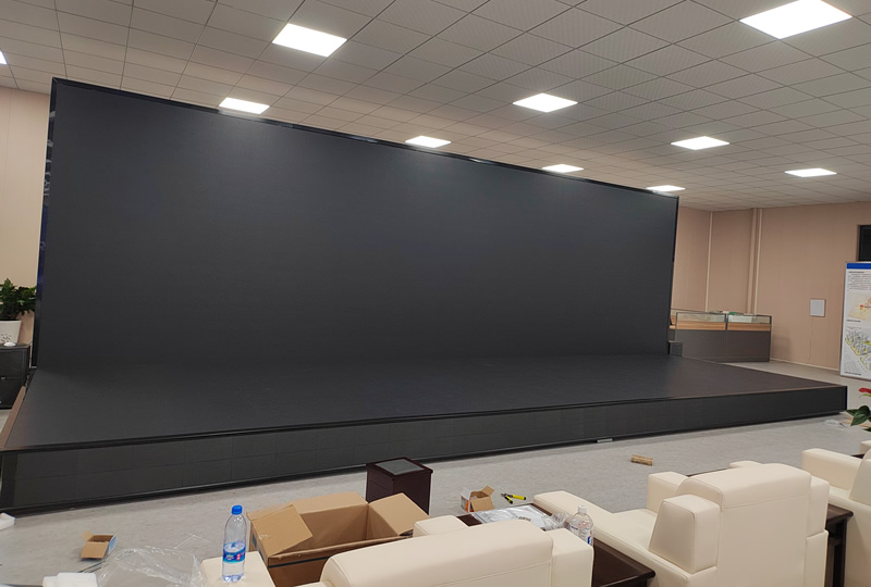 本案例中,維康國際為揭陽市某企業(yè)形象展廳提供一套雙面LED顯示屏,采用90度內(nèi)折安裝,如上圖所示,大屏幕顯示清晰,色彩豐富。