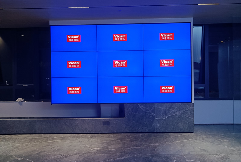 本案例中,維康國際為深圳南山某公司提供一套現(xiàn)代展廳顯示大屏,由于3*3拼接、55寸液晶拼接屏組成,采用1.7mm小拼縫款式,大屏幕顯示清晰,視覺體驗效果好。