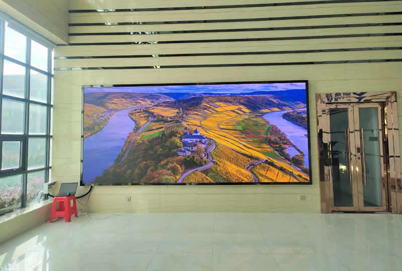本案例中,維康國(guó)際為九江市某企業(yè)寫(xiě)字樓提供一套大廳LED信息大屏,采用P2全彩LED,約十多平方米,大屏幕顯示清晰,色彩豐富,視覺(jué)體驗(yàn)效果好。