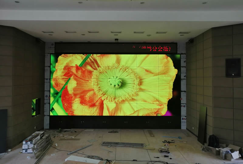 這套5x6會(huì)議大屏安裝在淄博某水利局,采用55寸液晶拼接屏,雙邊拼縫為3.5mm,主要用來(lái)做信息數(shù)據(jù)顯示。大屏畫(huà)面總長(zhǎng)度約:7.28米,高度約:3.42米。