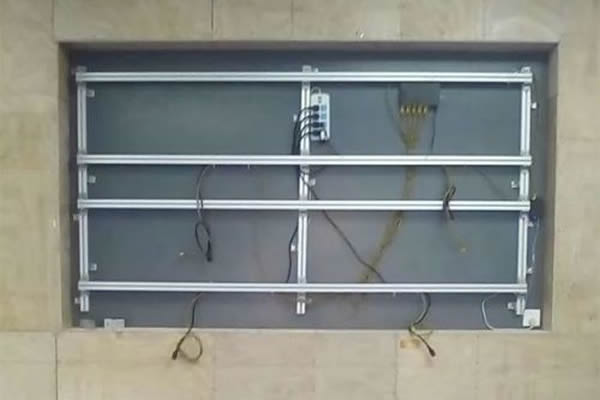 嵌入式安裝就是在墻體上預留凹形空間,然后安裝支架,在安裝屏幕后再對屏幕進行包邊處理,優(yōu)點是可以跟周圍的環(huán)境更好的融合,能夠更加節(jié)省空間,同時美觀性也比較好,考慮到維護問題,一般在屏體數(shù)量不多的情況下采用,這還需要在裝修時預留位置后期才好安裝。