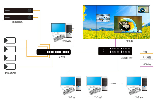 支持單屏2路4K;8路1080P;16路720P;36路D1視頻解碼。