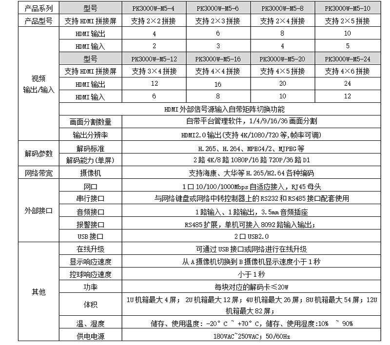 PK3000W-M5數(shù)字矩陣采用最新的安防專用編解碼芯片,專為H.265標(biāo)準(zhǔn)及4K超高清編解碼而設(shè)計(jì),產(chǎn)品采用嵌入式LINUX架構(gòu),保障系統(tǒng)的穩(wěn)定運(yùn)行,采用模塊化設(shè)計(jì),可以在大型、超大型數(shù)字安防監(jiān)控系統(tǒng)中實(shí)現(xiàn)解碼、編碼、拼接、分割、畫(huà)中畫(huà)、漫游等功能,為工程項(xiàng)目最大程序解決大數(shù)據(jù)數(shù)字化監(jiān)控系統(tǒng)提供解碼上墻及多信號(hào)輸入編碼等提供一站式解決方案;設(shè)備采用全鋁標(biāo)準(zhǔn)機(jī)箱,結(jié)構(gòu)上大氣美觀可靠,散熱性結(jié)構(gòu)化好。
