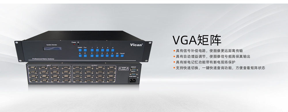 支持快速切換操作,支持一鍵快速查詢(xún)功能,方便查看矩陣的切換狀態(tài),具有掉電記憶功能帶有斷電現(xiàn)場(chǎng)保護(hù);