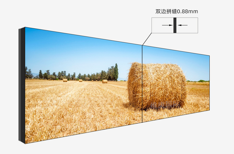 46寸拼接屏0.88mm長寬尺寸為1020*574mm,兩屏拼接后的物理邊框的寬度是0.88mm,實(shí)際顯示效果就只有一條細(xì)微的邊框,對視覺的影響已經(jīng)下降到最低。