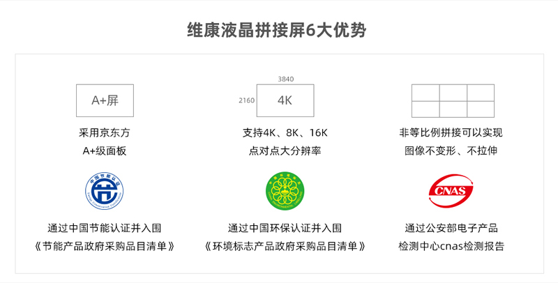 46寸拼接屏0.88mm產(chǎn)品經(jīng)過了CQC中國質(zhì)量認(rèn)證中心檢測,取得了環(huán)保、節(jié)能認(rèn)證,CNAS檢測報(bào)告等認(rèn)證,產(chǎn)品質(zhì)量穩(wěn)定可靠。