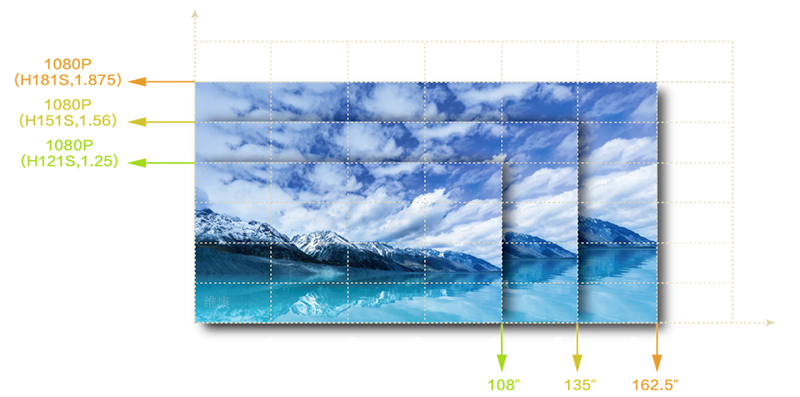 由于箱體是16:9比例,所以在拼接時(shí)只要保證等比例數(shù)量的拼接,整個(gè)LED顯示屏就不會(huì)發(fā)生變形,從而保證整體的顯示效果。如下圖,P1.53小間距LED顯示通過5*5拼接后即可達(dá)到一個(gè)1080P的分辨率效果。