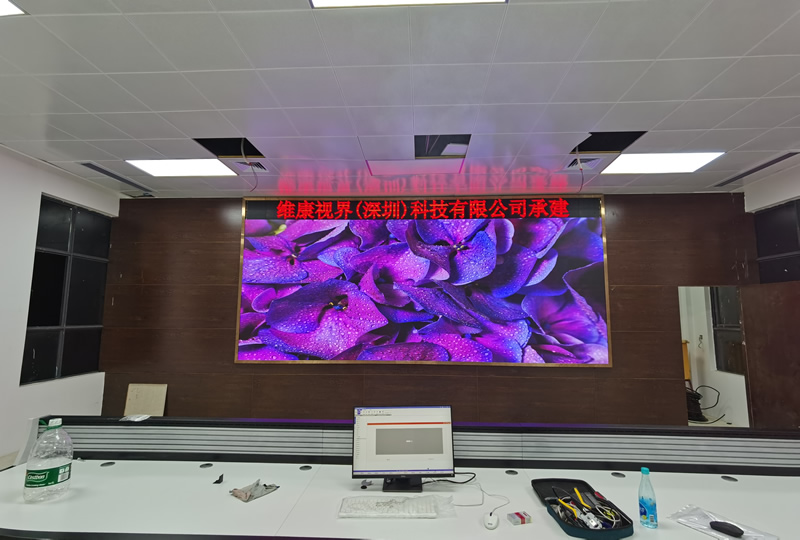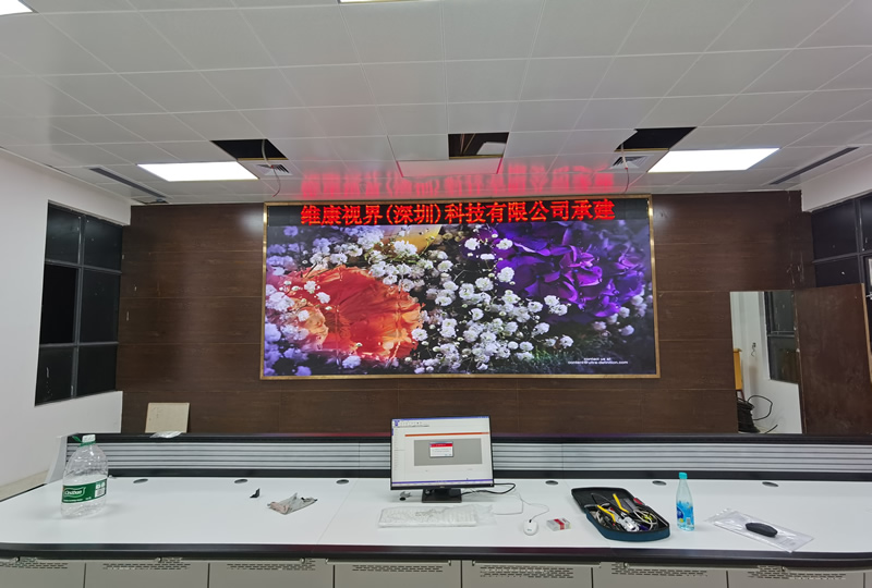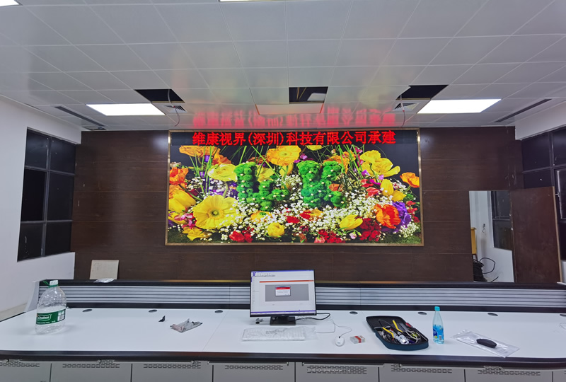 本案例中,維康國際為惠州污水處理廠提供一套LED顯示大屏解決方案,采用P1.875間距的全彩LED,如上圖所示,大屏幕顯示清晰,色彩亮麗,0mm縫隙拼接,畫面一體化顯示效果好。
