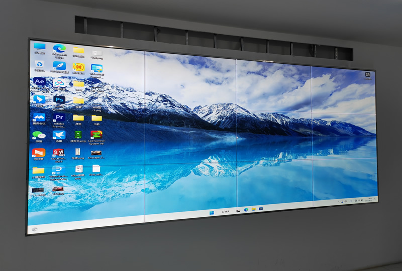 本案例中,維康國(guó)際為佛山順德某企業(yè)提供了一套高清顯示大屏,采用3行3列、55寸電子無(wú)縫拼接屏,如上圖所示,大屏幕顯示清晰亮麗,沒有黑邊的影響,全屏顯示的一體化效果很好。