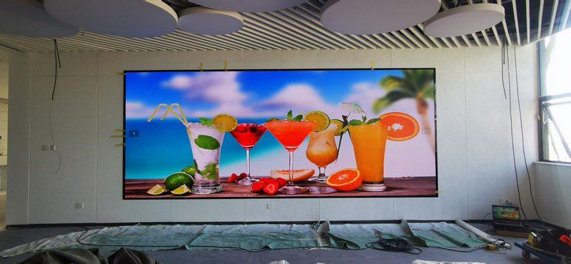本案例中,維康國(guó)際為深圳市某食品公司提供一套展廳大屏,采用P1.86COB系列,面積約11平方米,大屏幕高清顯示,色彩豐富,展示效果好。