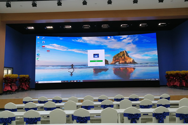 如果選擇LED顯示屏,一般情況下建議選擇一個P2左右的產(chǎn)品,刷新率在3840Hz的,直接安裝在背景墻上就可以,只需要一臺計算機與外置拼接處理器來控制就可以實時顯示計算機上的圖像,包括文字信息、數(shù)據(jù)內(nèi)容、視頻等。