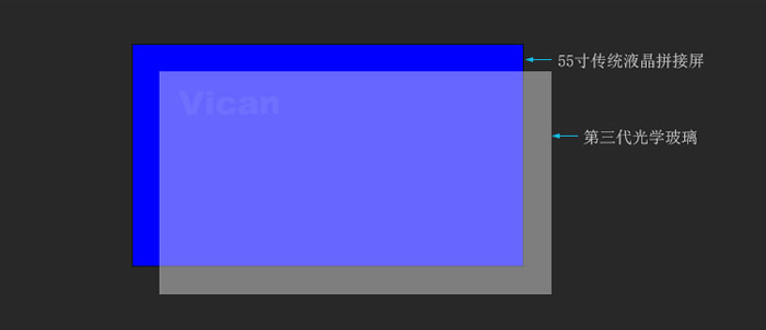 維康自主研發(fā)BFT技術(shù),采用優(yōu)良高分子高透明材料PMMA,利用光線折射原理,解決液晶屏拼接存在的物理黑邊問題,實現(xiàn)屏幕之間的縫隙消隱,展現(xiàn)出屏幕巨大一體化顯示效果。