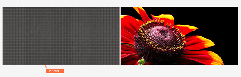 采用行業(yè)壓鑄鋁箱體,設計精度高,平整度高。箱體尺寸為640×480/(mm),模組尺寸寬320×高160mm,箱體重量7kg,亮度600~800cd/m2可調(diào),像素點僅有2.5mm。