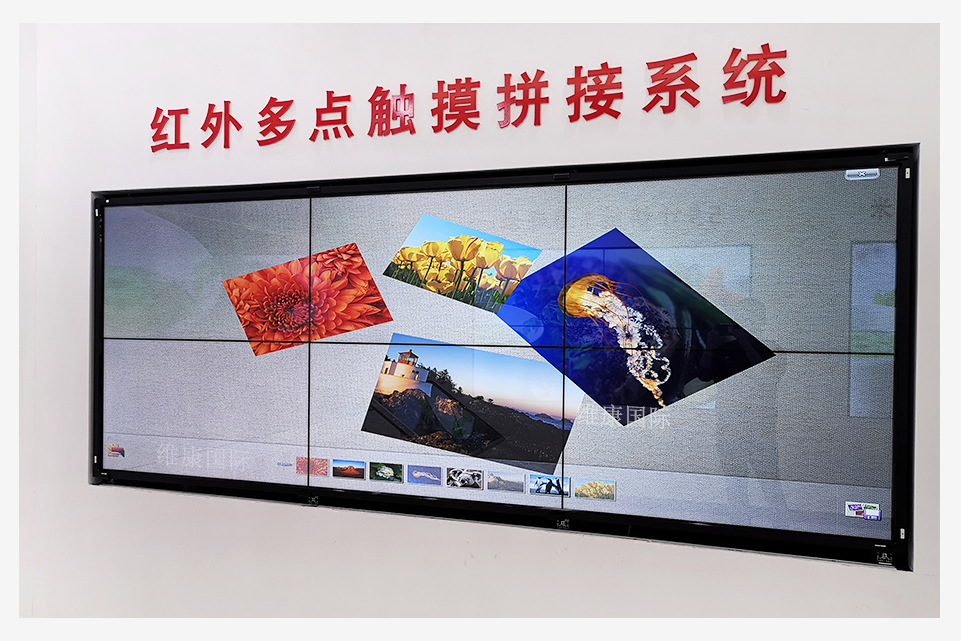 下圖是我公司安裝在深圳展廳的一組2*3的觸摸拼接屏實(shí)拍圖,采用紅外多點(diǎn)觸摸技術(shù),支持多人同時觸摸屏幕。